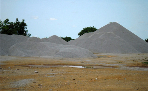 Des monticules de gravier et de gravillon obtenus après la transformation des blocs de pierre[/caption]